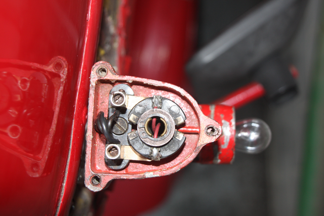 The indicator mounting after removal of indicator assembly (Note 2 original & 1 new wire). |