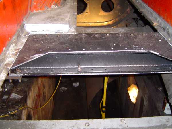 | The view down from the passenger compartment shewing 'B' frame & no crossmember | |